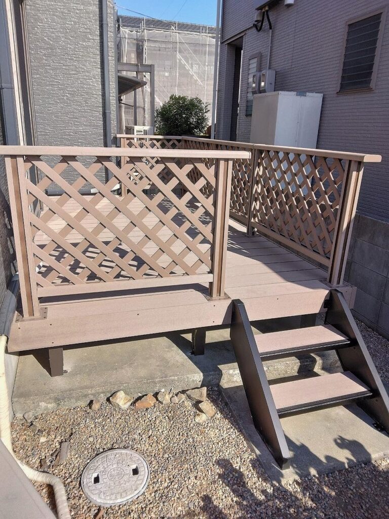 板野郡北島町 某邸:以前のウッドデッキを取り除き、新しいウッドデッキにリフォームしました。新しいデッキはデザインも機能性も向上しており、より快適で使いやすい空間が完成しました。これからのアウトドアライフがさらに楽しみですね。新しいデッキで過ごす時間が、より特別で素敵なものになることを願っています。