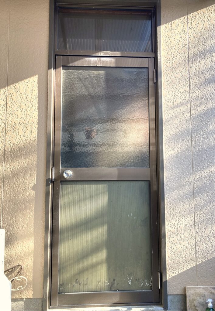 小松島市 某邸:勝手口ドアを取り替えました。お客さまは、古くなった勝手口ドアの交換を検討されており、今回、断熱仕様のリシェント勝手口ドアに取り替えました。