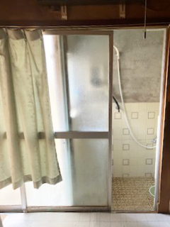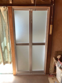 開閉しづらかった浴室の引き違い窓を、片側折戸に変更しました。